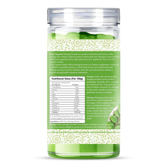 Zooja Organics Moringa Powder | 100% Pure & Natural Herbal Supplement | Rich in Vitamins, Minerals & Amino Acids | 300g